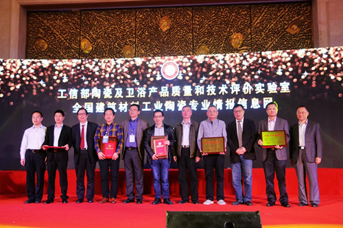 下午,由工信部陶瓷及衛浴產品質量和技術評價實驗室、全國建筑材料工業陶瓷專業情報信息網聯合主辦的2016年度建筑衛生陶瓷行業“質量突出貢獻獎”、“創新產品獎”、“綠色陶瓷磚”和“綠色衛生陶瓷”頒獎活動隆重舉行。2016年,經過企業申報、專家組審議、網上公示,共評出了“質量突出貢獻獎”23家企業,“創新產品獎”34家企業,“綠色陶瓷磚”30家企業,“綠色衛生陶瓷”14家企業。其中,廣東東鵬控股股份有限公司、廣東新明珠陶瓷集團有限公司和佛山市恒潔衛浴有限公司等企業獲得“質量突出貢獻獎”。繆斌、梁振海等為獲獎企業頒獎。(通訊員 劉小云)