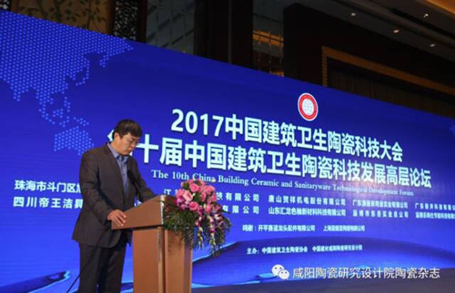 由中國建筑衛生陶瓷協會和中國建材咸陽陶瓷研究設計院聯合舉辦的 “第十屆中國建筑衛生陶瓷科技發展高層論壇” 暨“2017年中國建筑衛生陶瓷科技大會”于2017年12月12至14日在成都隆重舉行。來自國家有關部門的領導、協會領導、地方行業協會代表、有關地方政府領導、企業代表、新聞媒體代表近500人參加了此次大會。本次會議為中國建筑衛生陶瓷企業在政策調控、環保節能、新標準出臺、科技創新、智能制造、標準引領轉型升級等方面搭建了信息交流溝通的高端平臺。會議同期舉辦了2017年建筑衛生陶瓷產品質量提升大會、全國建筑衛生陶瓷標準化技術委員會國家標準工作會議、《建筑衛生陶瓷工程設計節能標準》標準修訂審議會等多場活動。