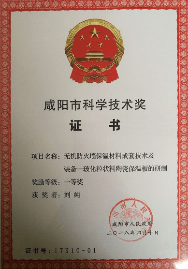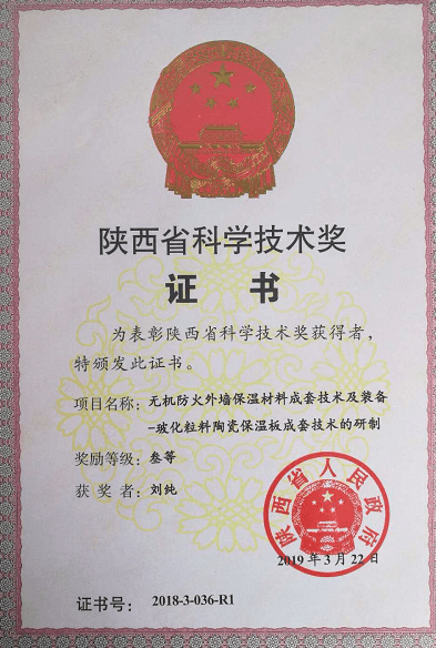 “玻化粒料陶瓷保溫裝飾一體板”是“十二五”國(guó)家科技支撐計(jì)劃項(xiàng)目“新型保溫阻燃建筑材料成套技術(shù)研發(fā)與應(yīng)用示范”的科研成果之一,2016年4月17日已經(jīng)由科技部委托住房與城鄉(xiāng)建設(shè)部科技司組織了課題驗(yàn)收。該項(xiàng)目獲得陜西省2018年科學(xué)技術(shù)獎(jiǎng)3等獎(jiǎng)。
