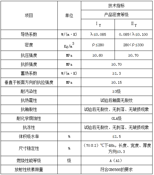 保溫板性能指標(biāo)