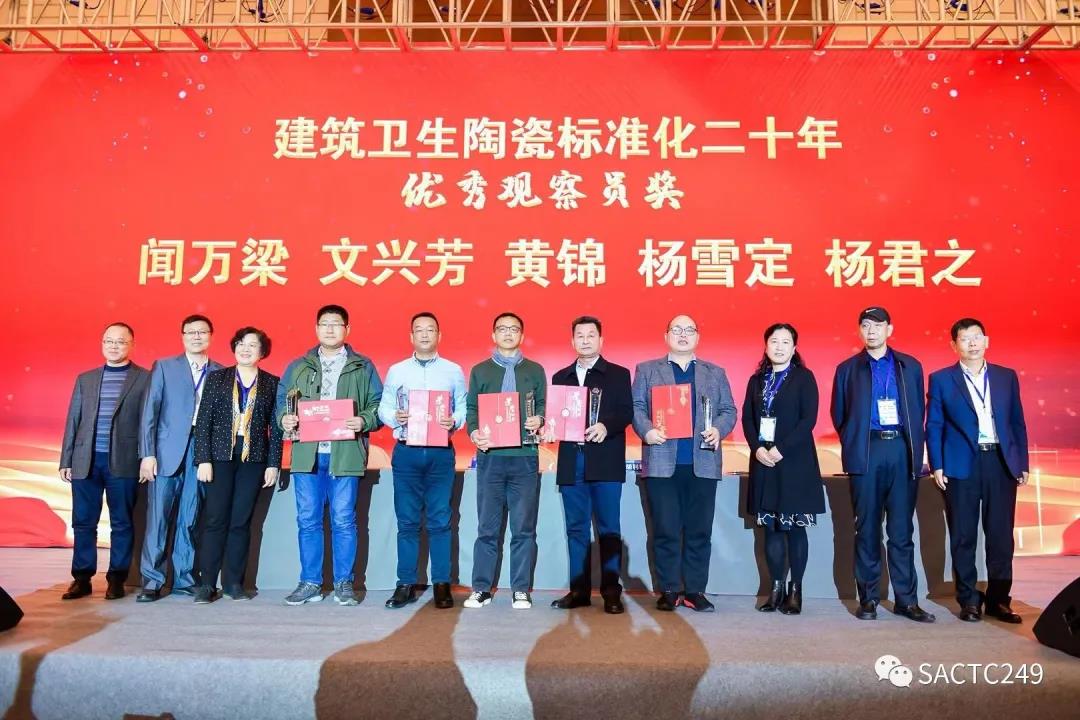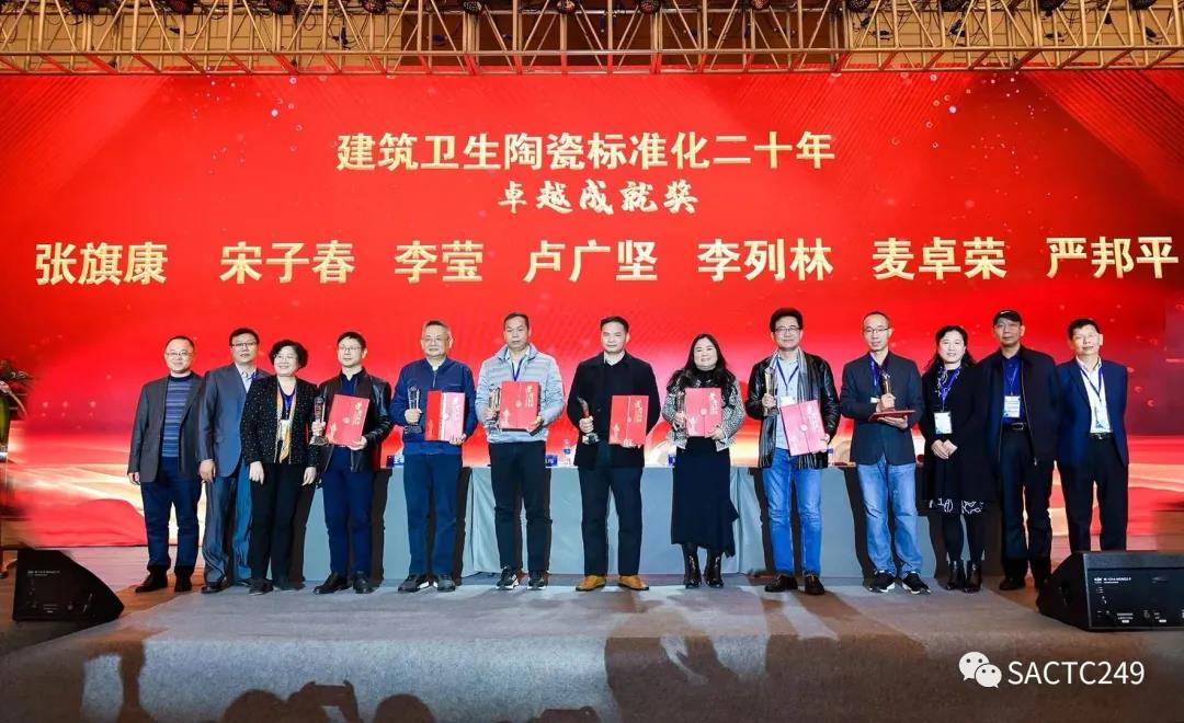 會上還對全國建筑衛生陶瓷標準化技術委員會二十年先進人物進行了表彰,授予:尹虹、繆斌、王巍建筑衛生陶瓷標準化工作二十年功勛人物獎;張旗康、宋子春、李瑩、盧廣堅、李列林、麥卓榮、嚴邦平建筑衛生陶瓷標準化工作二十年卓越成就獎;區卓琨、張錦揚、肖景紅、何寶金、陳嵐波建筑衛生陶瓷標準化工作二十年優秀委員獎;聞萬梁、文興芳、黃錦、楊雪定、楊君之建筑衛生陶瓷標準化工作二十年優秀觀察員獎。