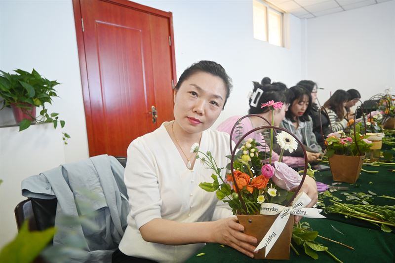 活動中,女職工們在觀看花藝老師示范插花后,躍躍欲試,紛紛自己動手制作,認真學著、剪著,按照花種的顏色,將一朵朵鮮花錯落有致地裝飾在花籃中,創作出各自的插花作品;顒蝇F場,大家有說有笑,氛圍十分溫馨,女職工們在與花草的交流中,緩解了平時的工作生活壓力,身心得到了放松。