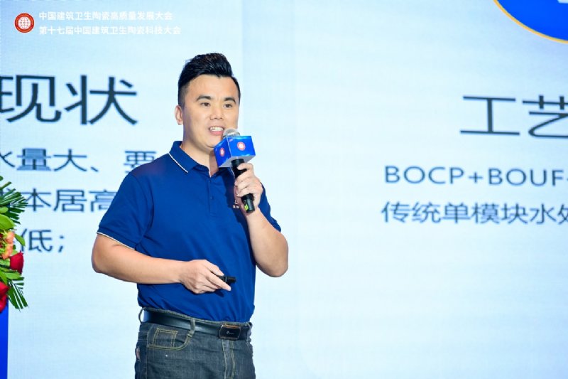 濟(jì)南藍(lán)海洋環(huán)保科技有限公司市場總監(jiān)胡世橋作題為《無機(jī)廢水循環(huán)再生技術(shù)在陶瓷行業(yè)中的應(yīng)用》。胡世橋市場總監(jiān)在報告中指出:海洋推出的BOCP+多價離子濾技術(shù)工藝組合顛覆了傳統(tǒng)的單模塊處理的設(shè)計理念,打通了從污水處理達(dá)標(biāo)排放到中水回用循環(huán)再生,這兩個工藝段的節(jié)點(diǎn),使得生產(chǎn)用水實現(xiàn)了真正意義的全循環(huán)。